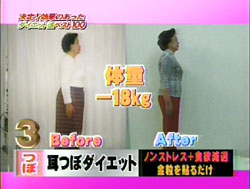 1. 自然に食欲が落ち、食べながらやせられます 2. ウエストやお腹からやせていきます 3. 健康になって太りにくくなります 4. ダイエット中はストレスが抑えられます 5. 栄養分を補給しながらダイエットをするので、ダイエット中の体力や抵抗力が落ちません 6. ダイエットの途中も後も、素肌にハリがあり、シワができにくくなります 7. リバウンドしない体質に変わります 8. 生理痛や生理不順が解消します 9. 健康でライフスタイルが変わります 10.耳つぼダイエットは体質改善が目的です |